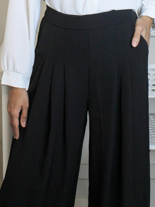 Wide-Leg Black Pleated Tailored Korean Trouser